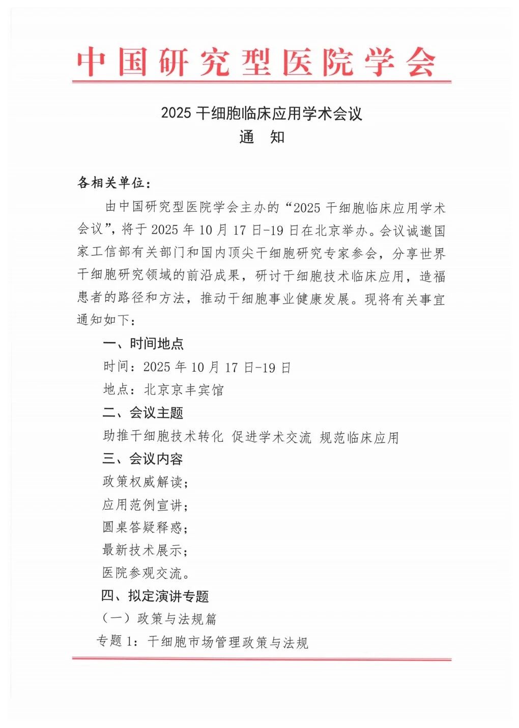 【10月17-19日】 2025干细胞临床应用学术会议通知及日程安排
